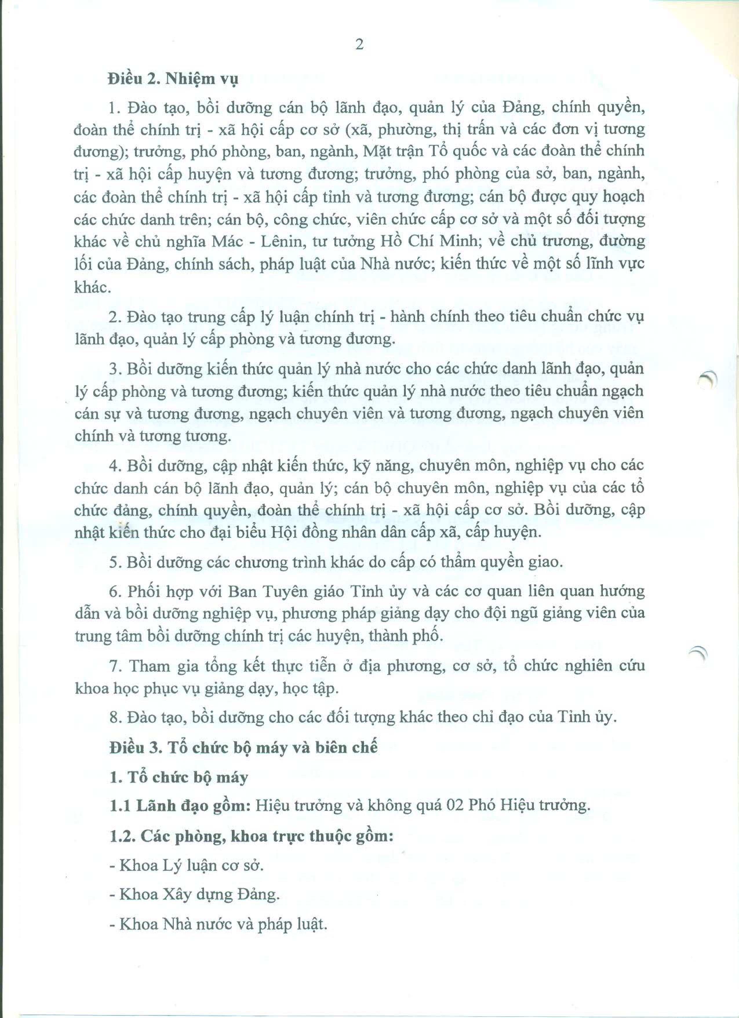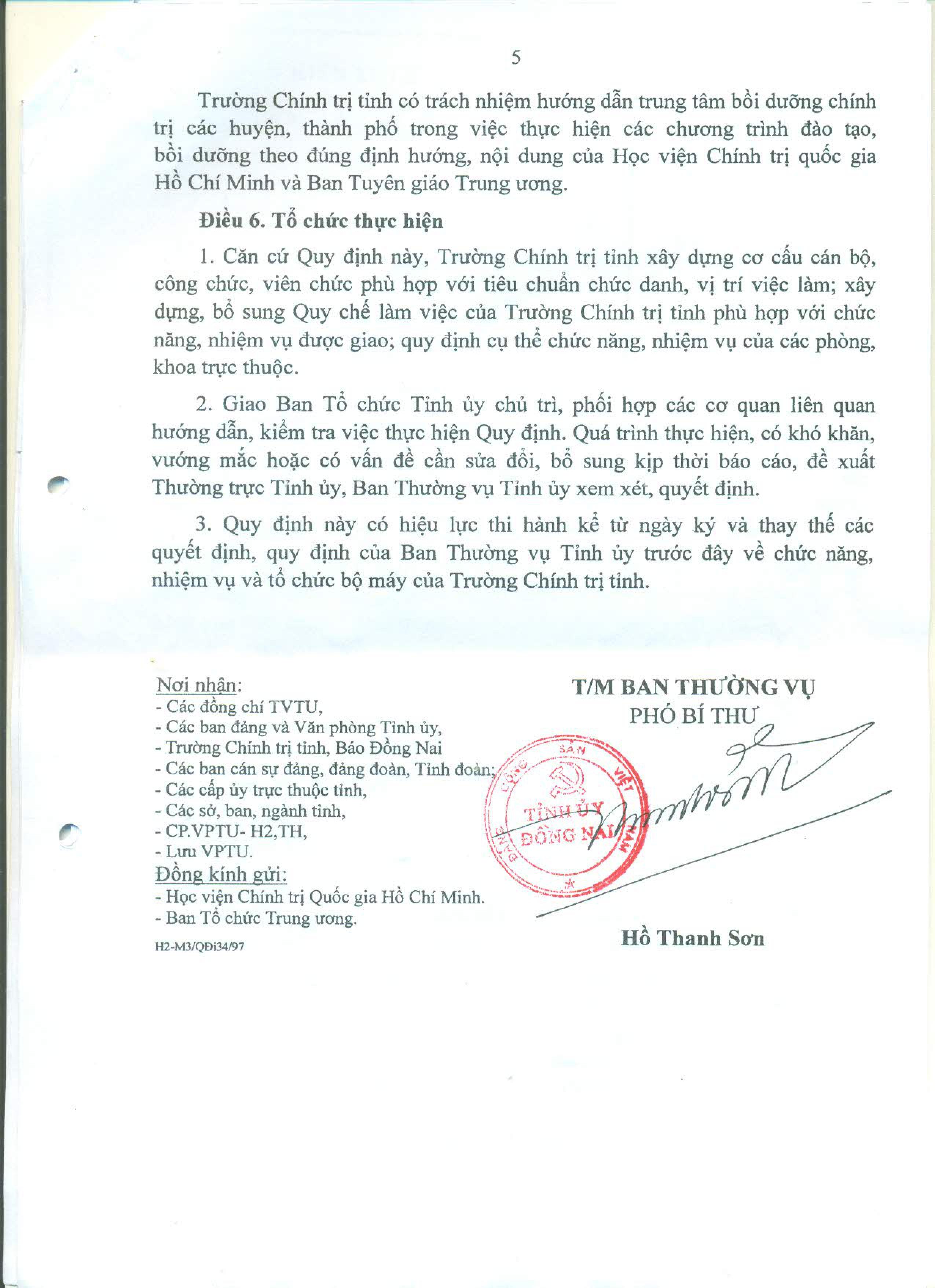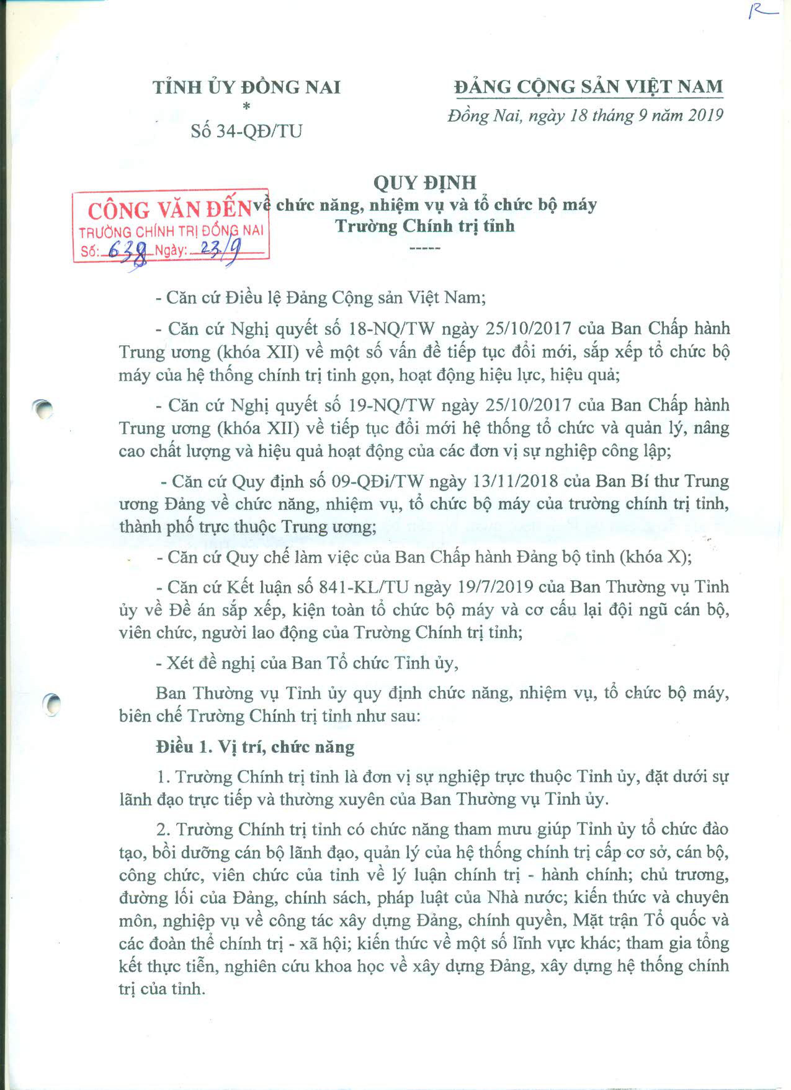 CHỨC NĂNG, NHIỆM VỤ CỦA TRƯỜNG CHÍNH TRỊ TỈNH ĐỒNG NAI (Theo Quyết định số 34-QĐ/TU ngày 18/9/2019 của Tỉnh ủy Đồng Nai)