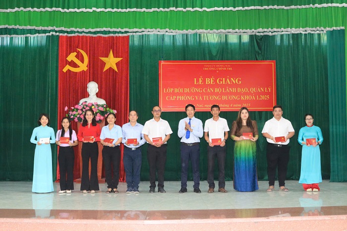 Sáng ngày 25/4/2025, trường Chính trị tỉnh Đồng Nai đã tổ chức lễ bế giảng lớp Bồi dưỡng lãnh đạo, quản lý cấp phòng khóa 1/2025. Tham dự buổi lễ có ThS. Tạ Văn Soát – Phó Hiệu trưởng và các đồng chí đại diện phòng chức năng của Sở Nội vụ, các phòng, khoa của nhà trường cùng với 55 đồng chí học viên của lớp.